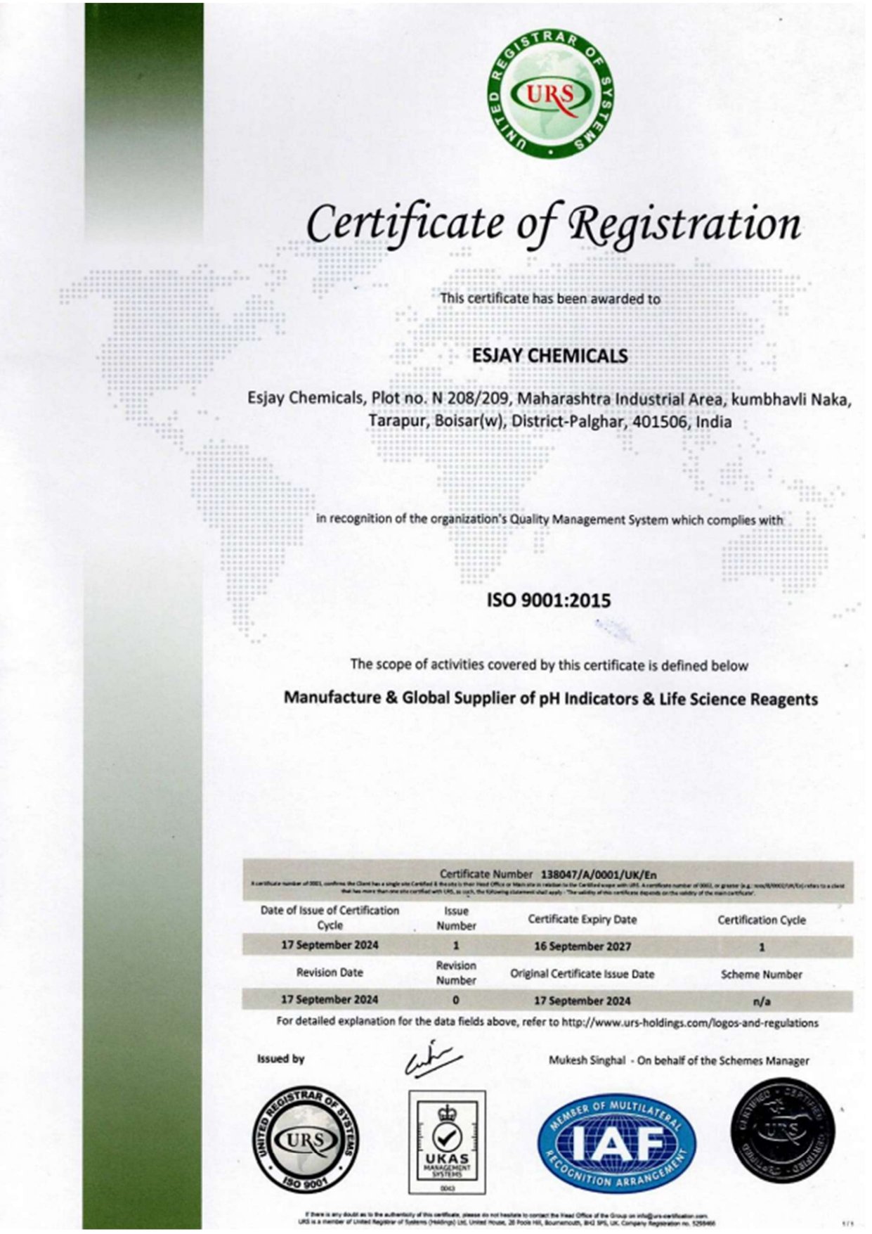 Our ISO certification covers the manufacture and global supply of pH indicators and life science reagents, reinforcing our position as a reliable international supplier.